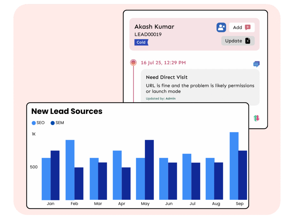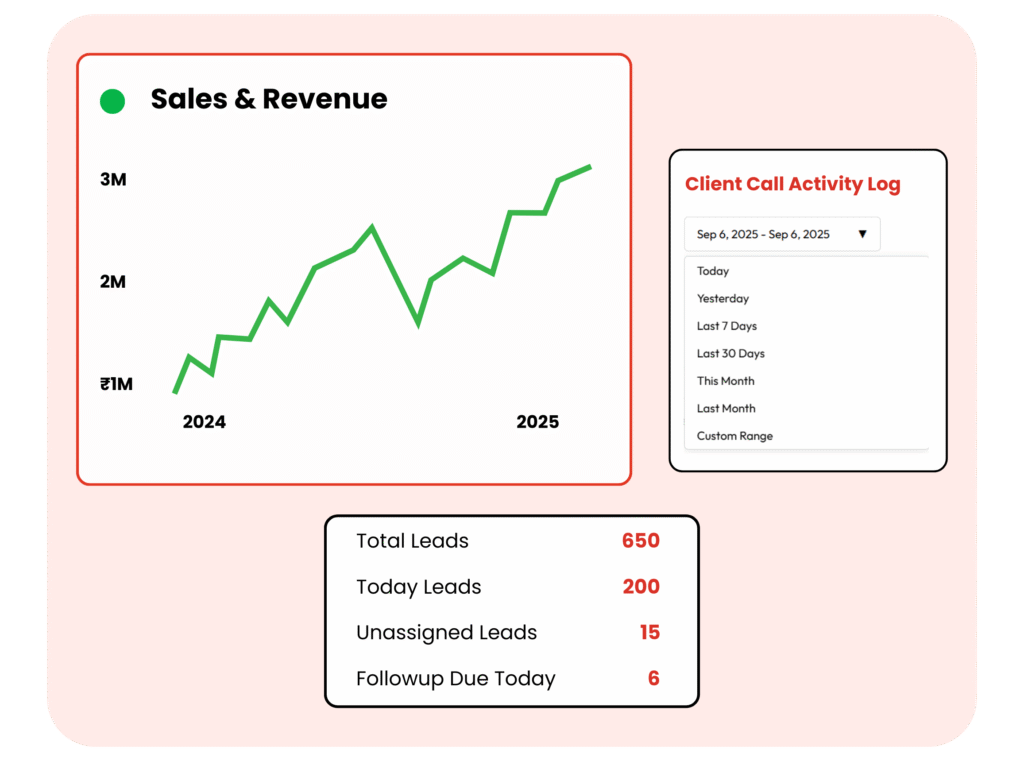Monitor every step of the sales journey with clear visibility. Keep your team accountable and ensure timely follow-ups for every lead.